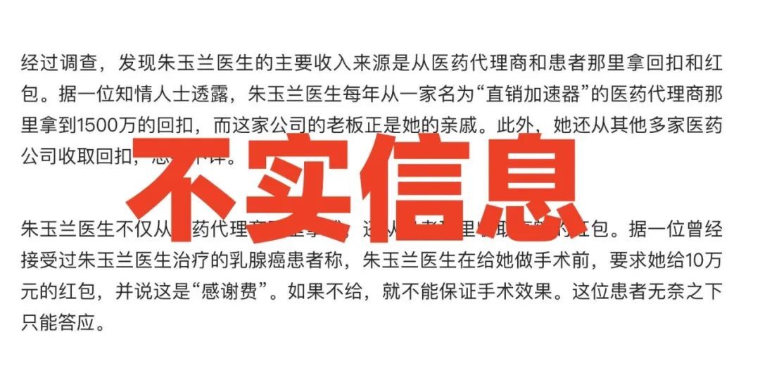 8月10日下午,常州市广播电视台微信公众号“中吴网”发文辟谣“乳腺外科医师朱某某相关谣言”。 该文称,近日,有人在社交网络、自媒体平台发布严重失实信息,引发大范围传播扩散,谣言不断升级发酵,造成极其恶劣的社会影响。